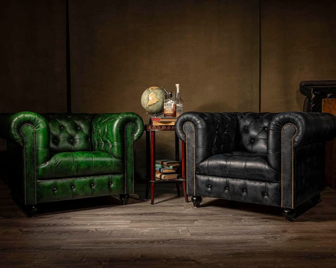 Kingsford Collection - Emerald Green Top Grain Buffalo Leather Chesterfield sofa ( Available May End)