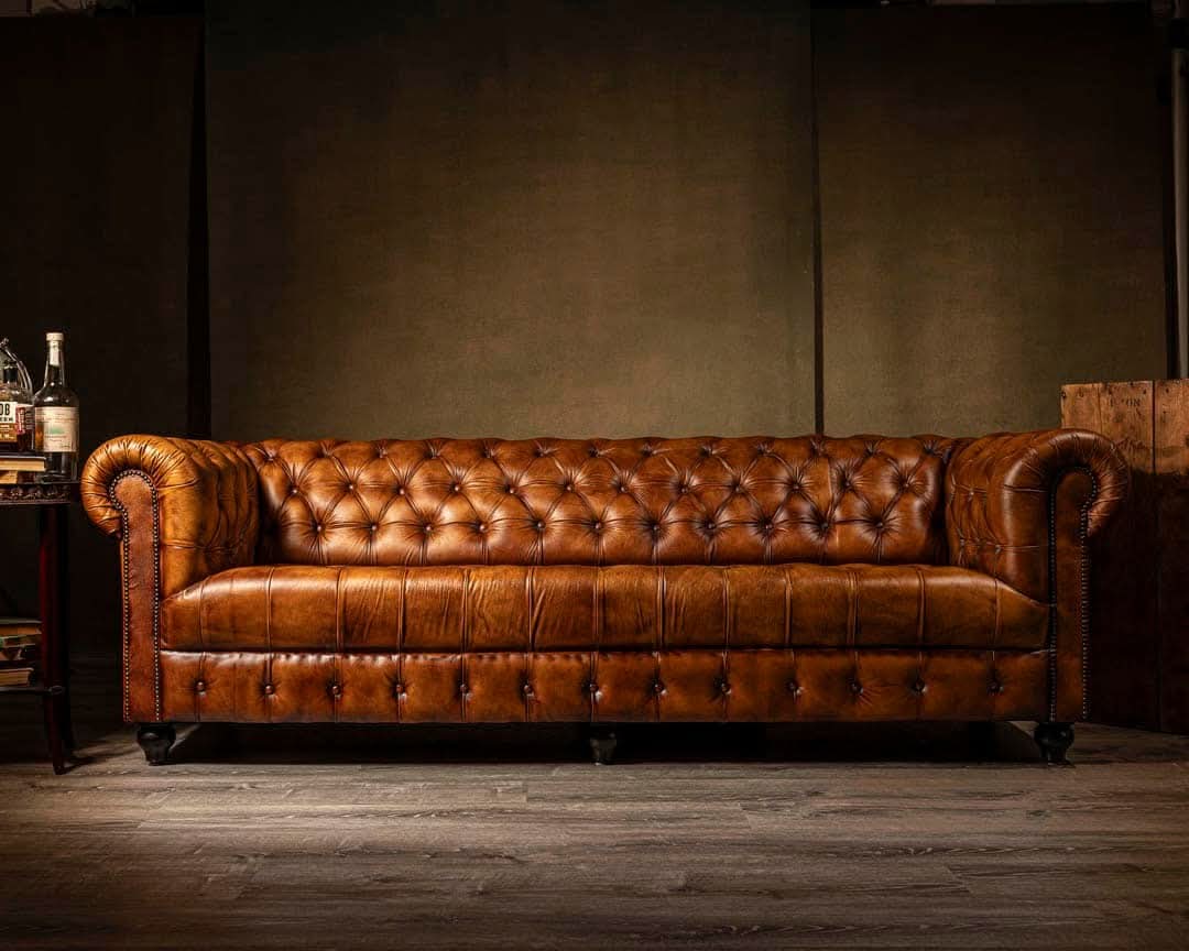 Kingsman Natural Tan Top Grain Buffalo Leather Chesterfield sofa (Availabe May End)